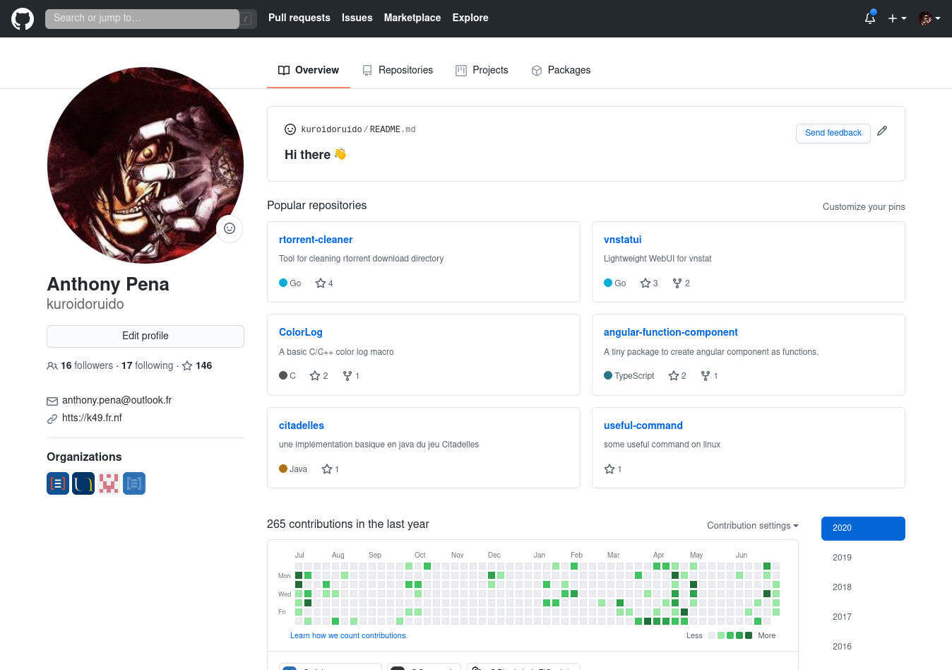 En vous rendant sur votre page de profil (https://github.com/votreNomDUtilisateur) vous verrez apparaître ce nouveau README qu'on vient de créer. Maintenant à vous de voir ce que vous voulez mettre en avant sur votre profil Github 😎
