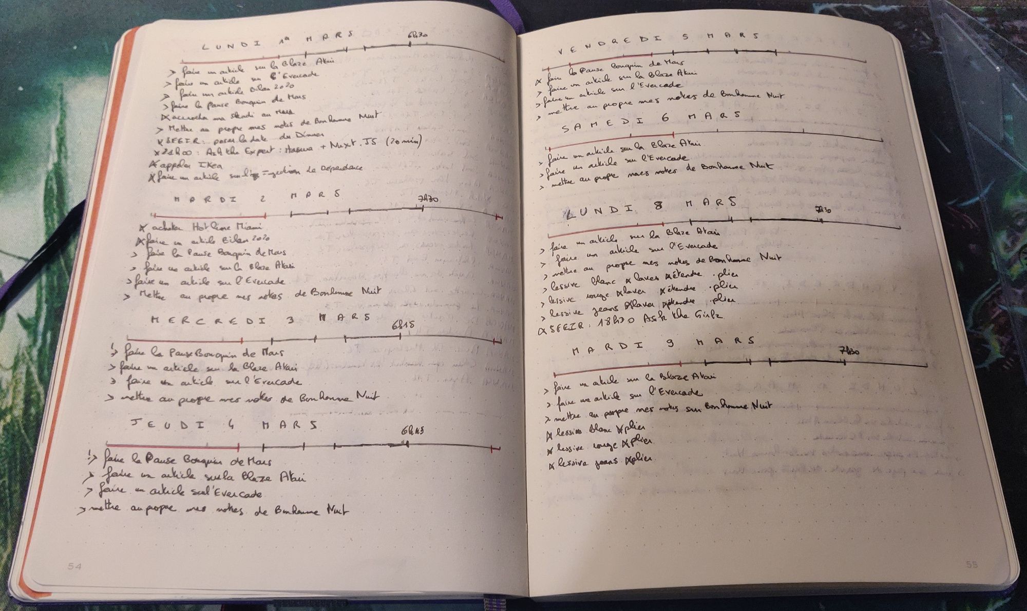 En effet mon BuJo me permet d'être mieux organisé, de plus prendre conscience de ce que j'ai à faire, ce que j'ai fait, de quand je prévois trop de chose, de ne rien oublier. C'est une méthode souple et très adaptative qui peut aider beaucoup de gens, même si comme moi beaucoup hésiteront à passer le cap du carnet alors qu'on est entouré d'outil numérique à commencer par notre smartphone qui semble permettre tout.