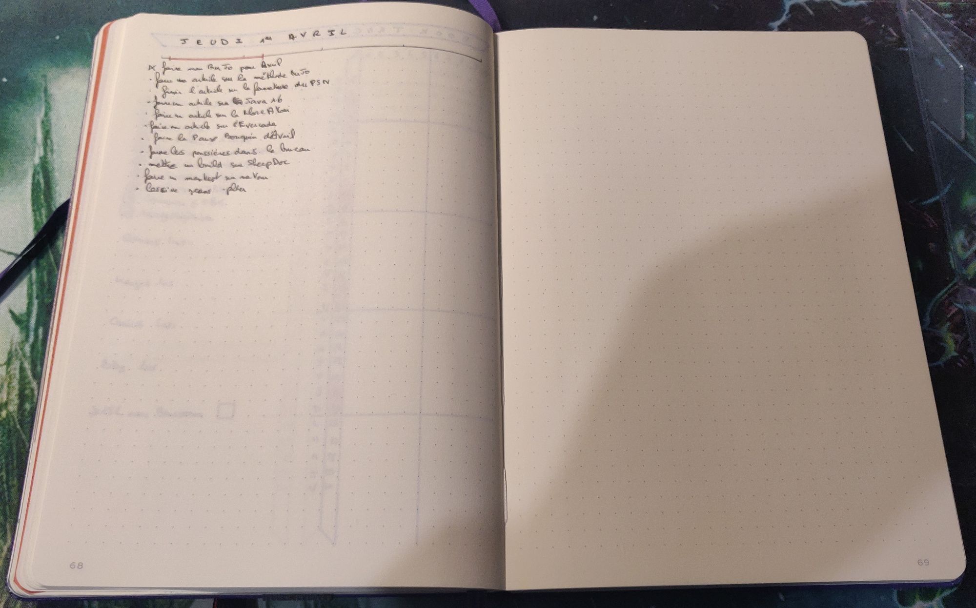 À la suite je vais noter en rapid logging les tâches de la veille que je n'ai pas effectuées, les tâches que j'ai à faire aujourd'hui et en cours de journée quelques notes au besoin.