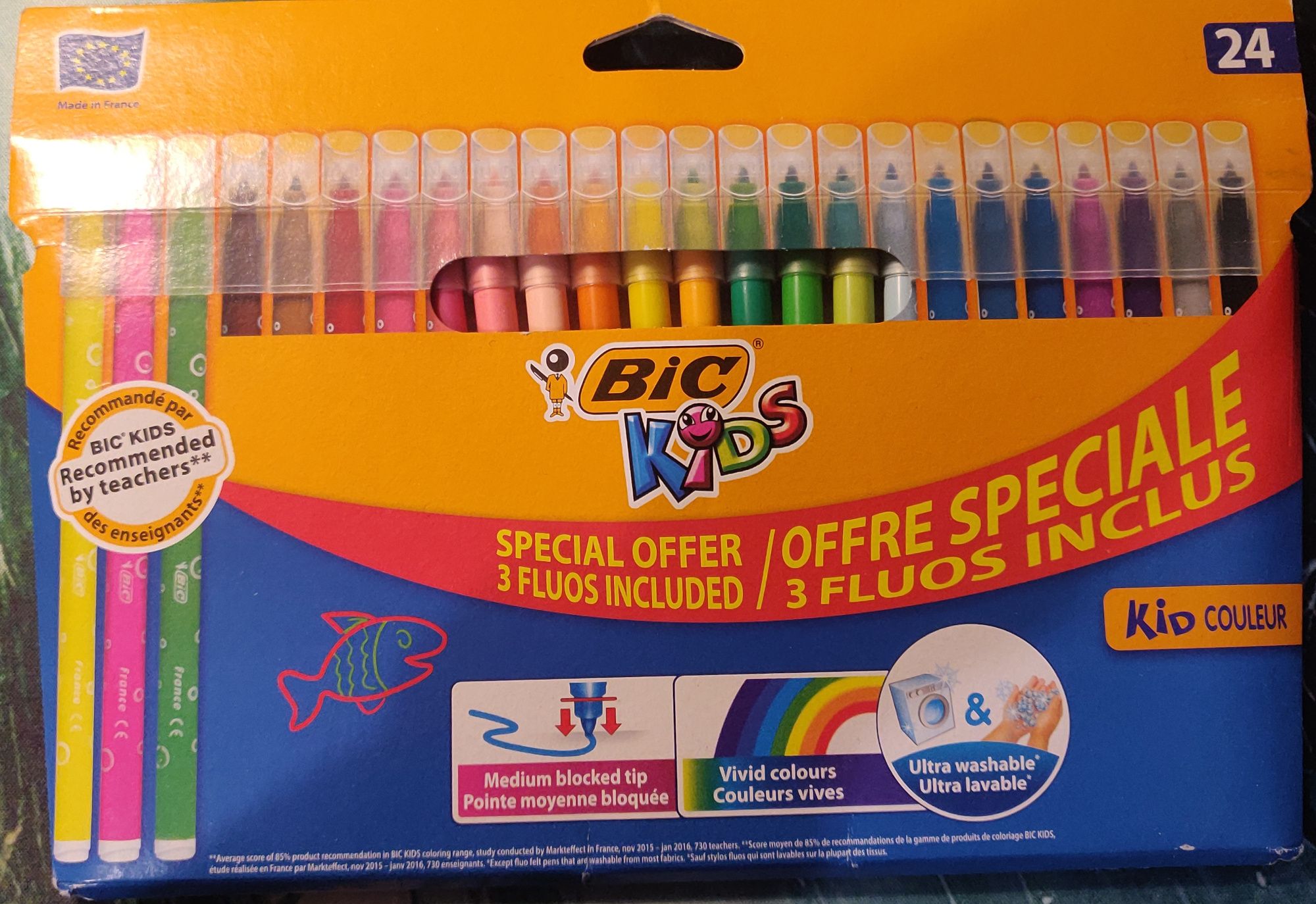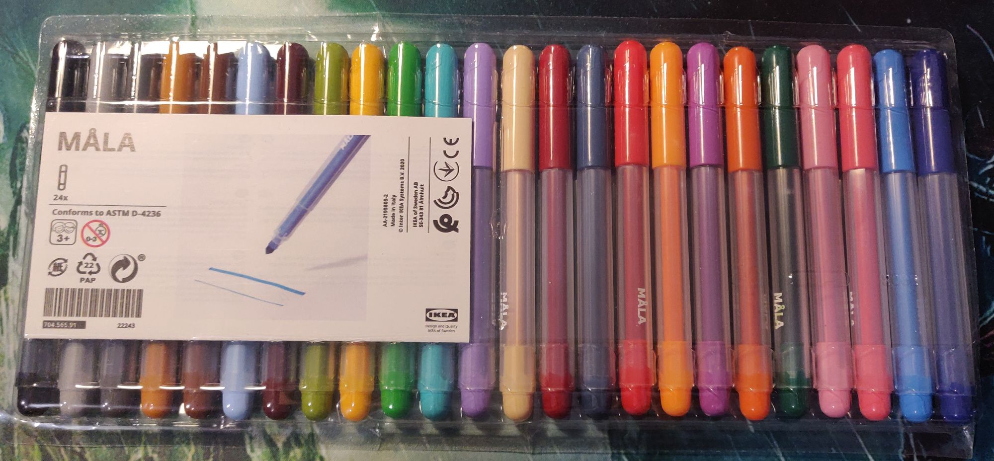 J'utilise aussi des pochettes de feutres. J'ai principalement deux pochettes : une pochette BIC Kids qui est très facile à trouver dans le commerce, et une pochette de feutre Ikea Mâla qui a des couleurs sympas et qui ne traverse pas trop le papier.
