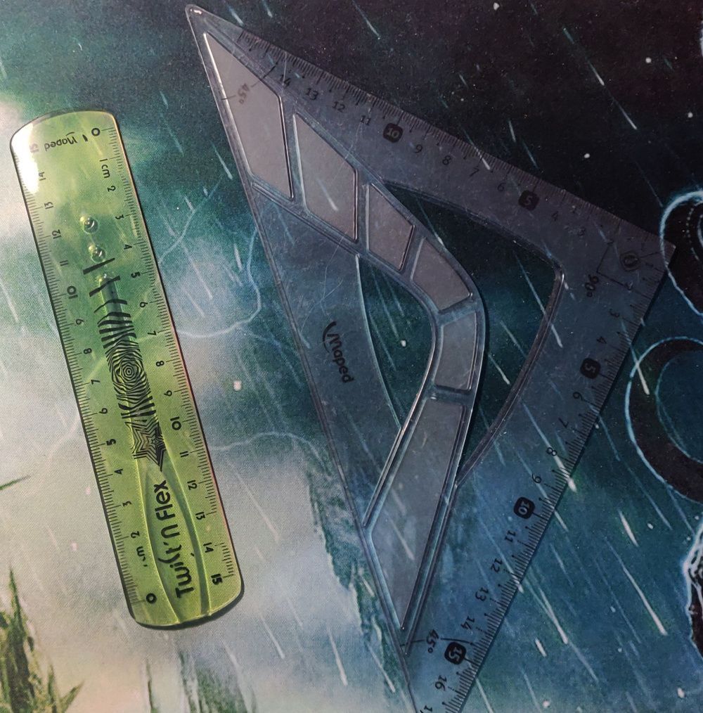 Au quotidien, dans mon carnet, j'ai une règle mapped twist'n flex de 15cm. C'est une règle plutôt souple mais pas trop de sorte qu'elle ne casse pas de peur (souvenir d'école de règles cassées dans les trousses…) mais pas assez souple pour se déformer totalement au fil du temps.