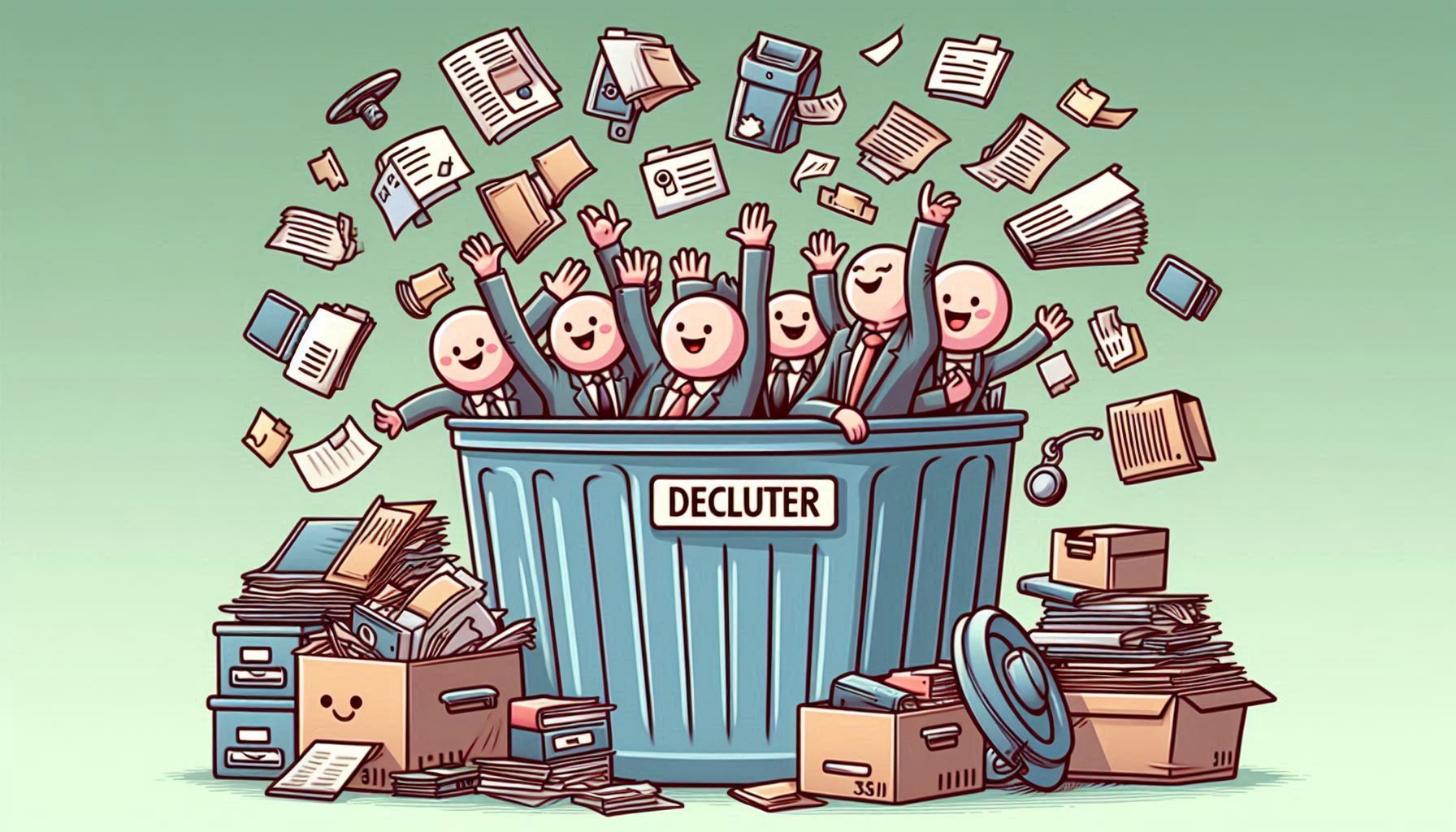 declutter, cut, useless, files, directory, archive, trash, bin, happy