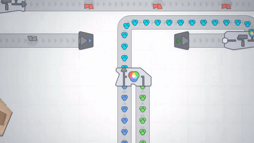 L'idée est simple : vous allez créer une usine permettant de fabriquer en masse des formes colorées de plus en plus complexe. Le but ultime étant de pouvoir créer une usine intelligente adaptant la production à la demande avec toute une partie circuit logique (qui arrive après un certain stade de jeu).